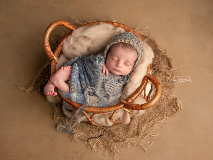 Il servizio fotografico del neonato va programmato con attenzione. Il periodo migliore per effettuare questo tipo di sessione fotografica è nei primi 10- 15 giorni di vita, periodo in cui il neonato dorme a lungo e serenamente, non è ancora infastidito dalle coliche e conserva l’imperturbabile beatitudine neonatale. Il suo corpo è flessibile e può essere posizionato facilmente con la massima delicatezza.